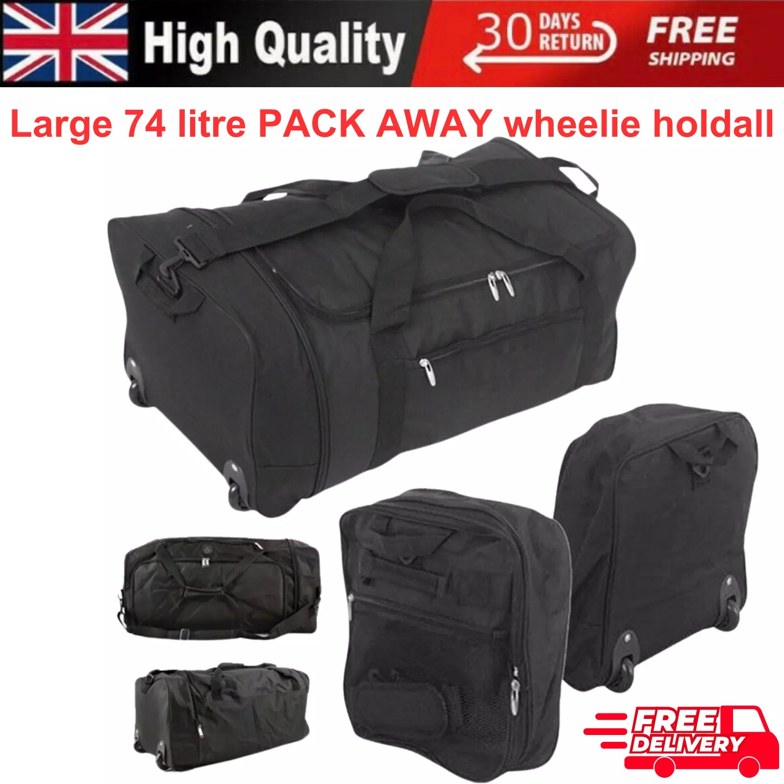 ✨ Large 74L Folding Wheeled Holdall Bag – Lightweight & Durable ✨