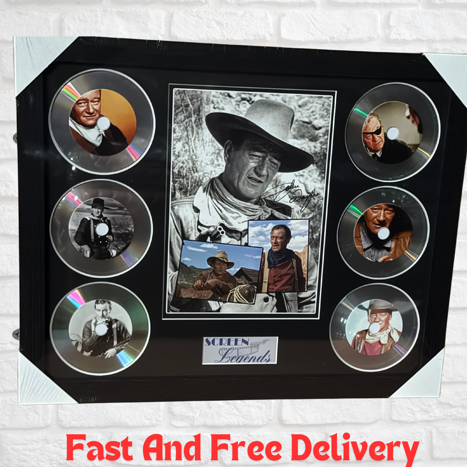 Celebrate a true icon of American cinema with this stunning John Wayne framed disc set – the perfect collectible for fans of Westerns and classic Hollywood.