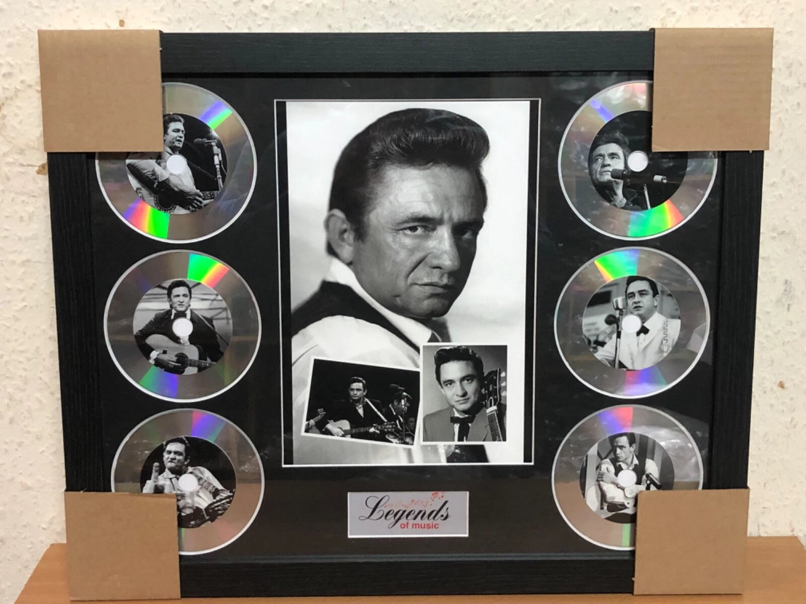JOHNNY CASH MEMORABILIA FRAMED PICTURE PRESENTATION DISC SET LEGENDS OF MUSIC UK STOCK