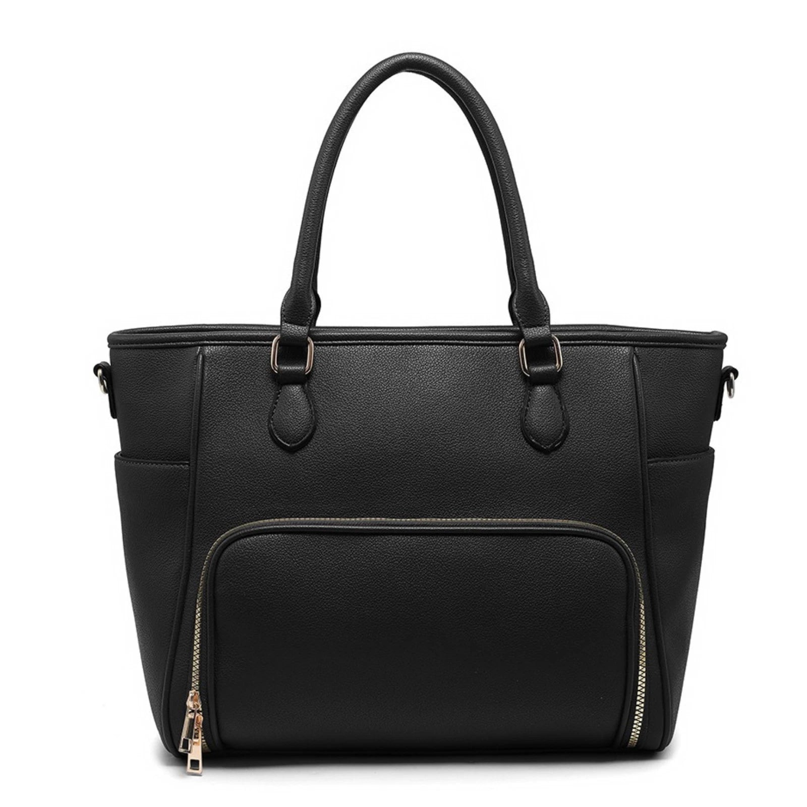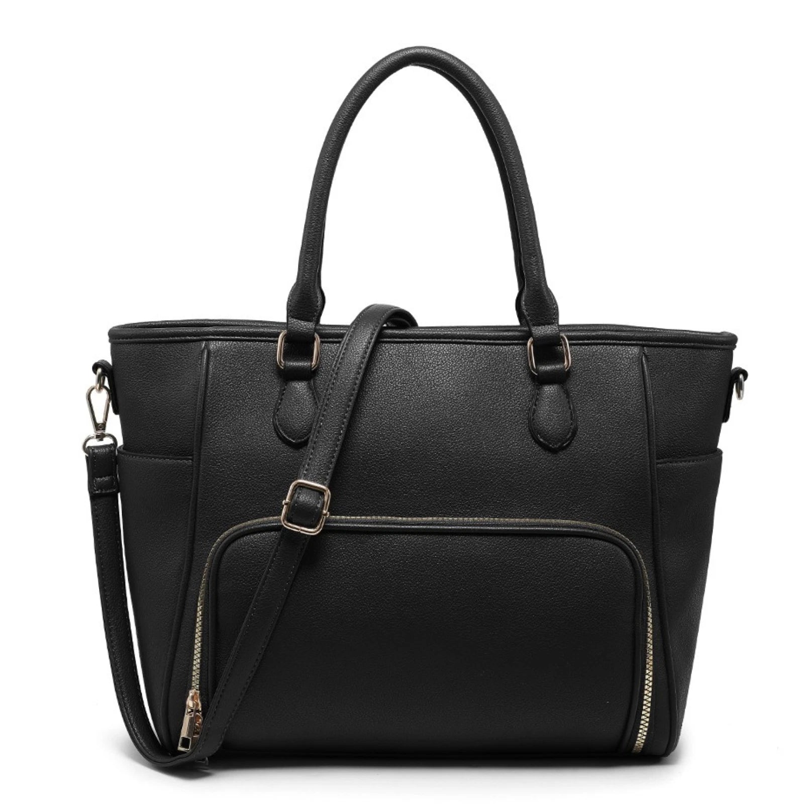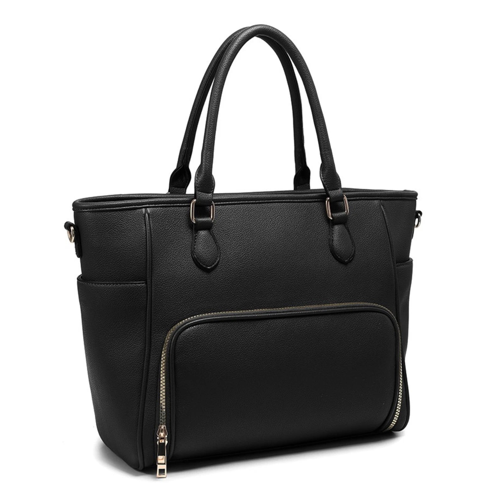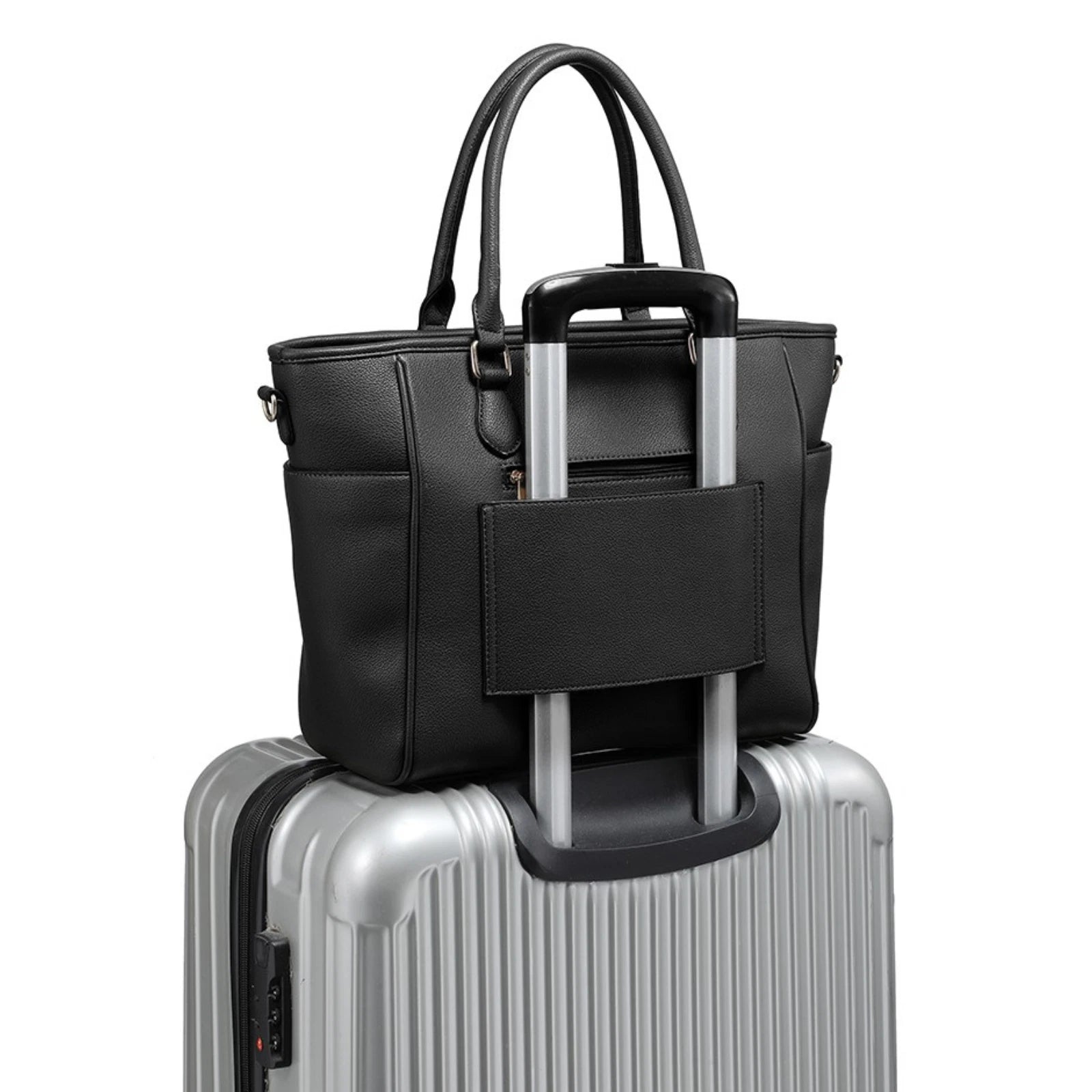 LADIES LARGE TOTE BAG BLACK VEGAN LEATHER LAPTOP WORK TRAVEL SHOULDER HANDBAG UK STOCK