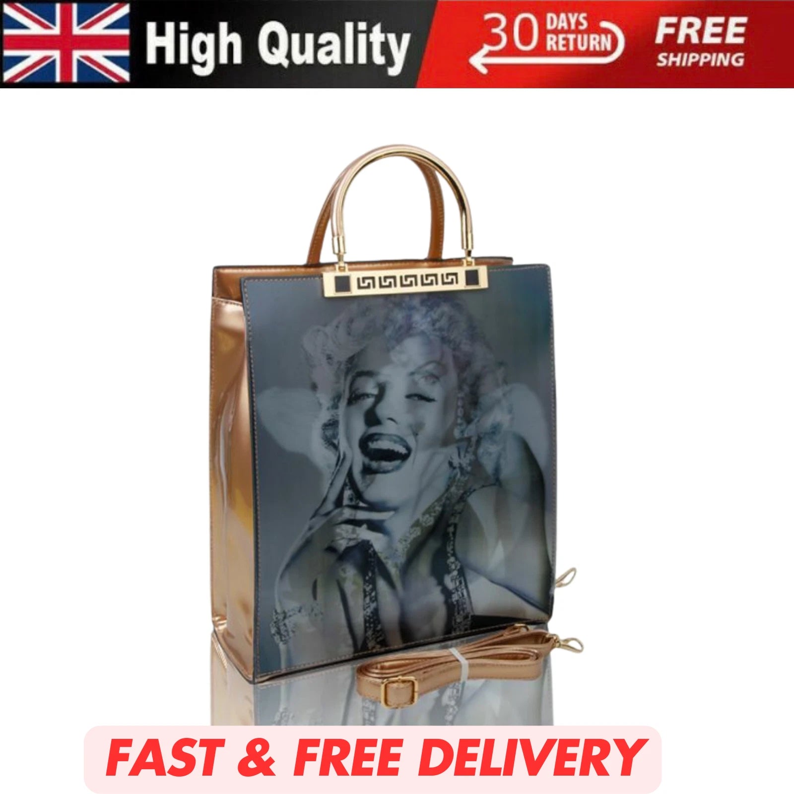 NEW WOMEN'S MARILYN MONROE 3D PATENT SHOULDER BAG SHOPPER TOP HANDLE HANDBAG UK STOCK