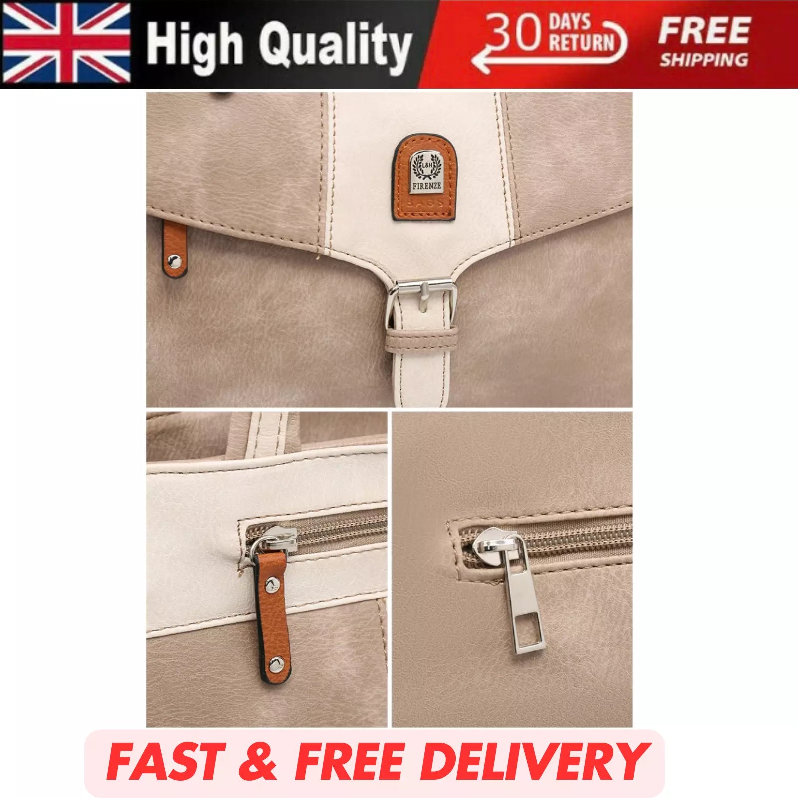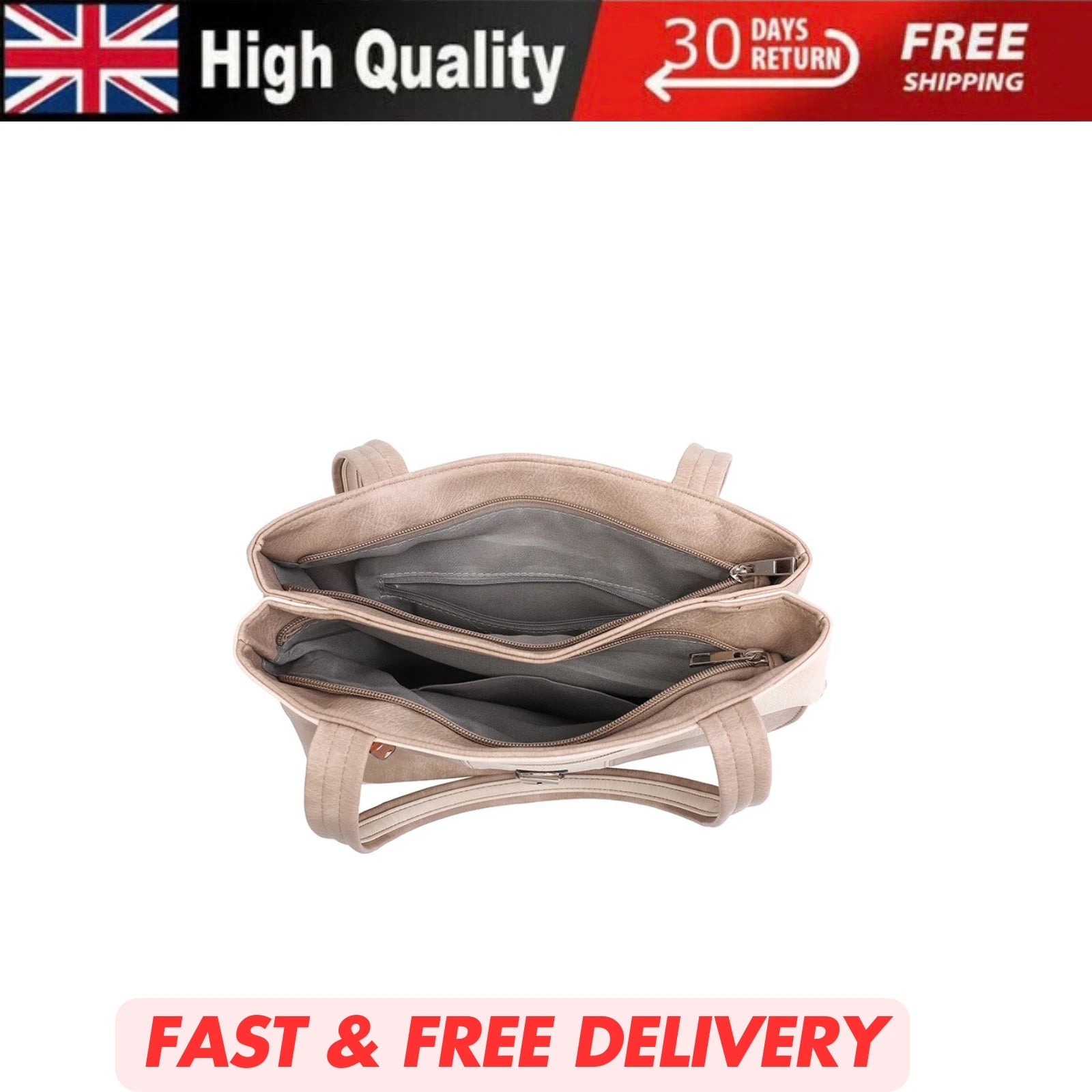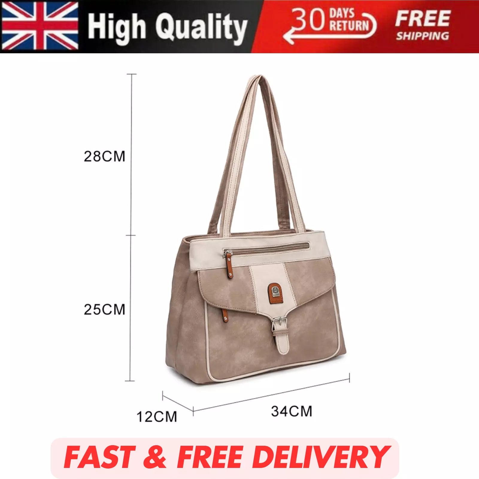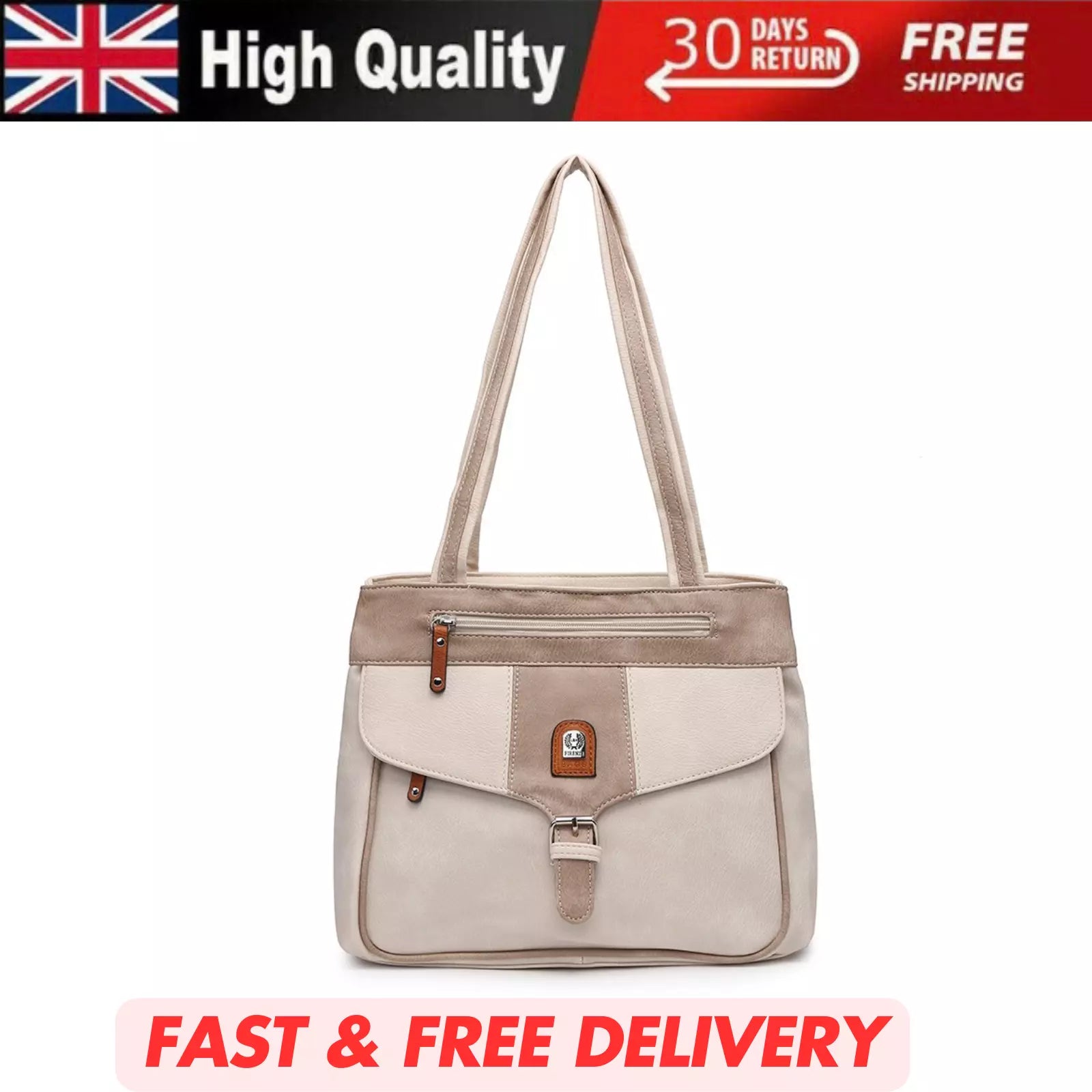 WOMEN'S VEGAN SOFT LEATHER CLASSIC HANDBAG SHOULDER BAG MULTIPOCKETS & DURABLE UK STOCK
