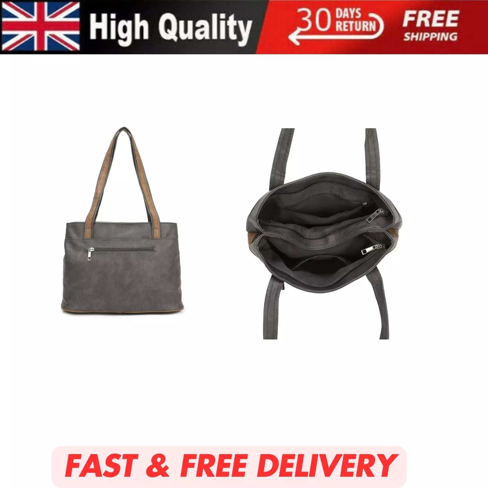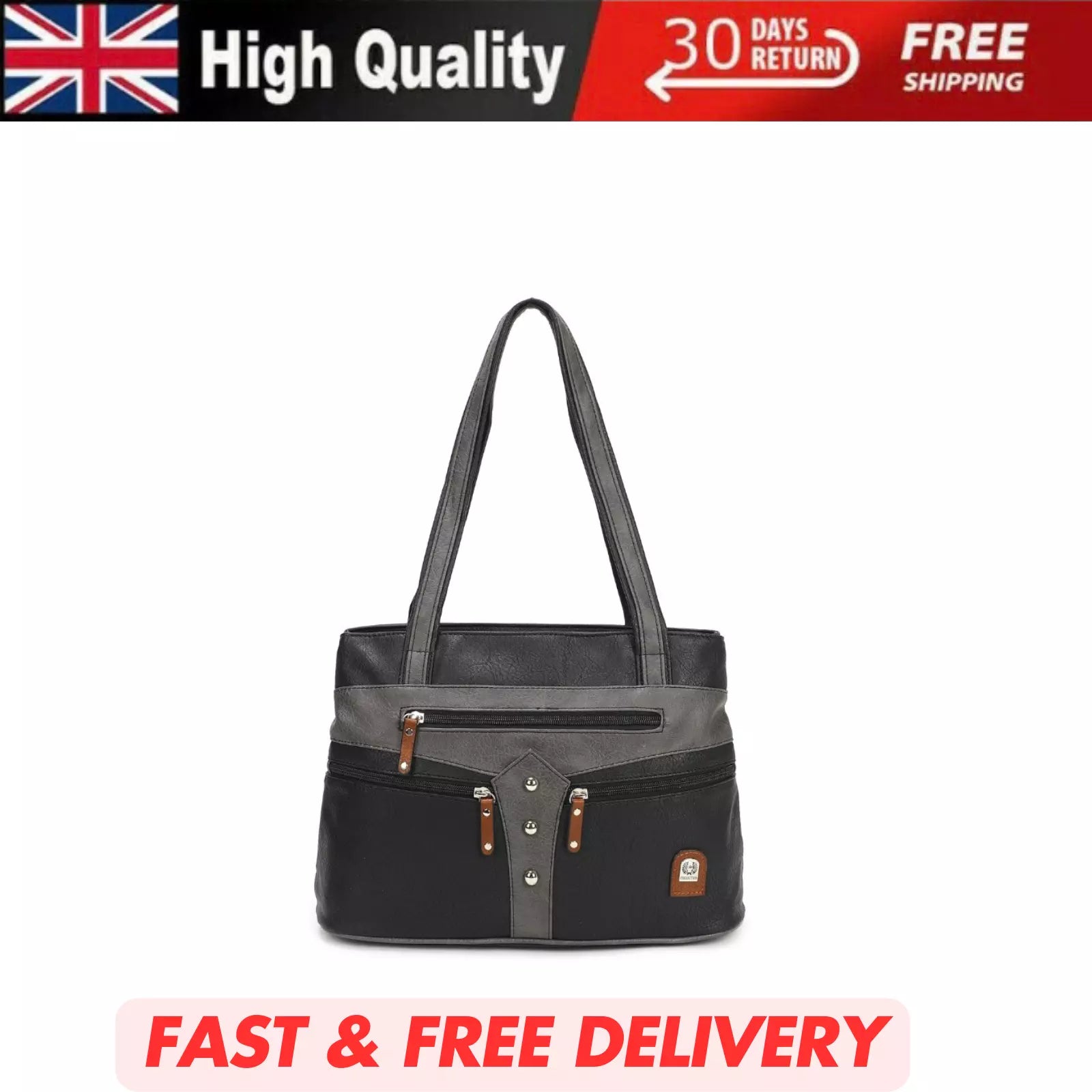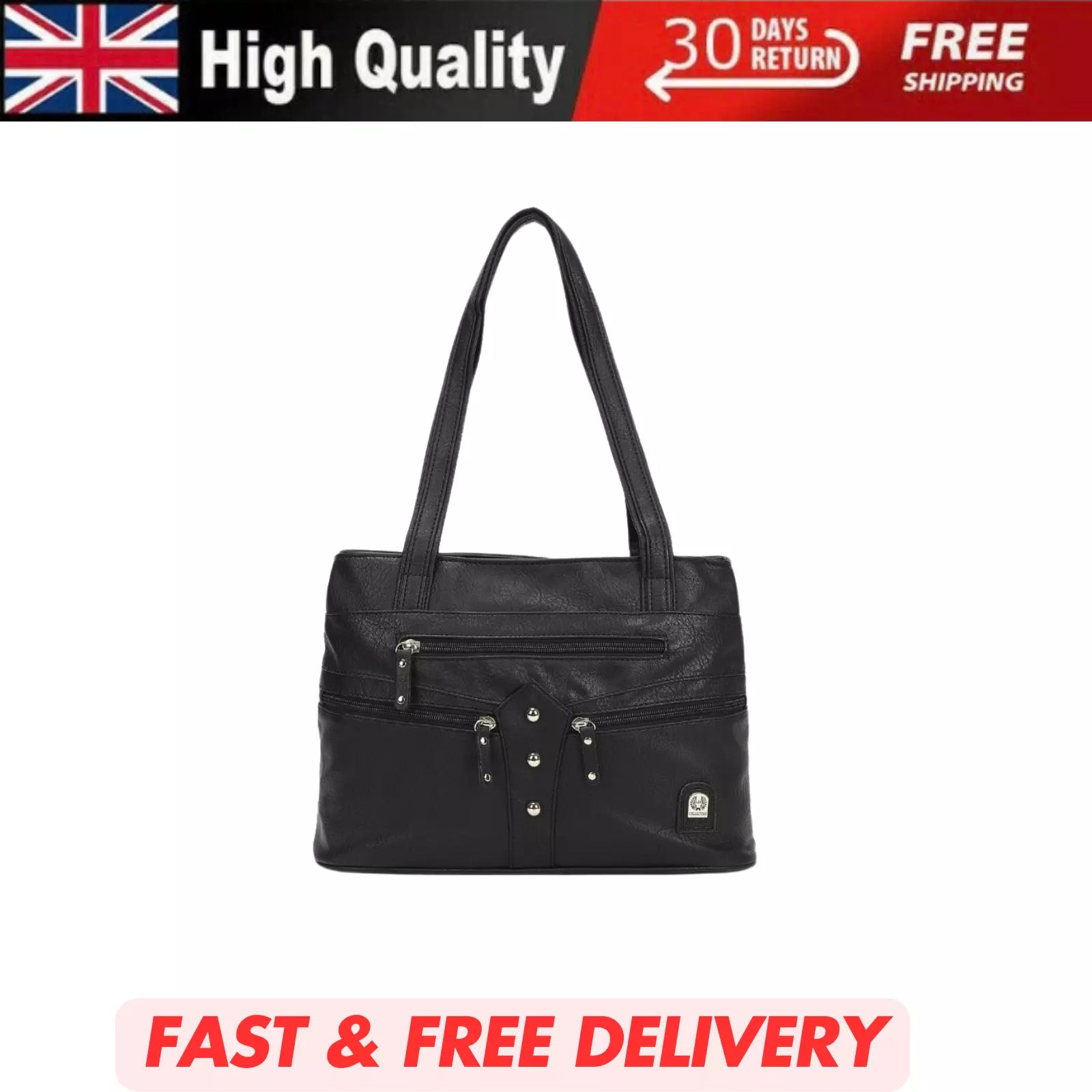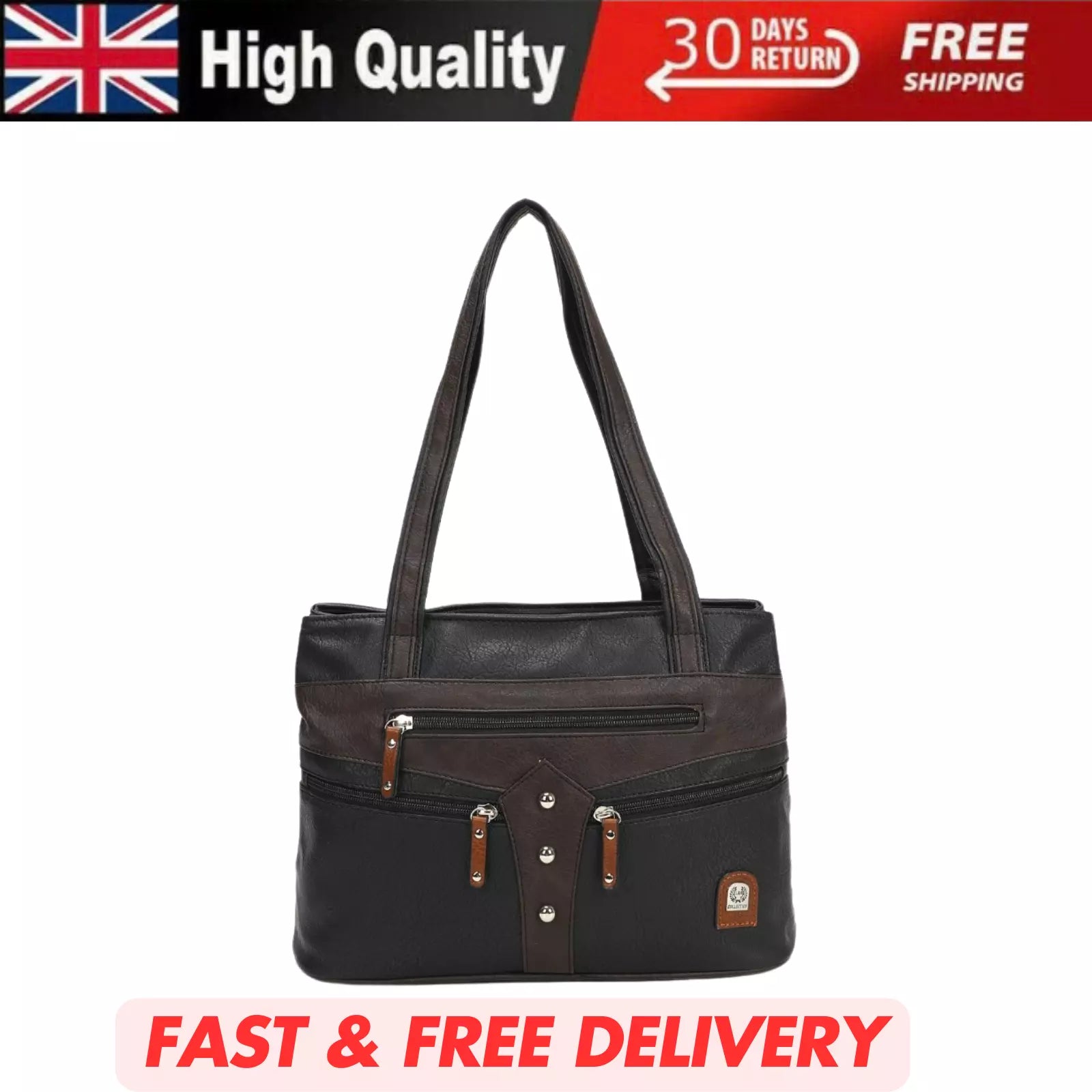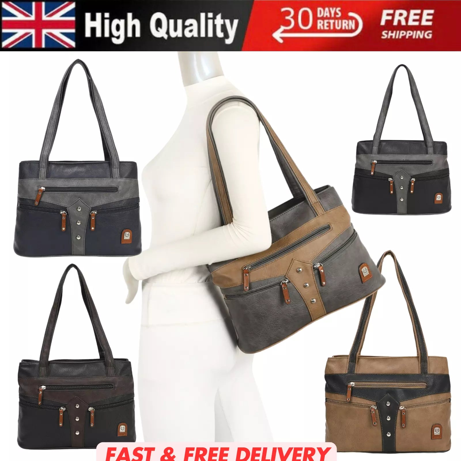 WOMEN'S VEGAN SOFT LEATHER CLASSIC HANDBAG SHOULDER BAG MULTIPOCKETS DURABLE UK STOCK