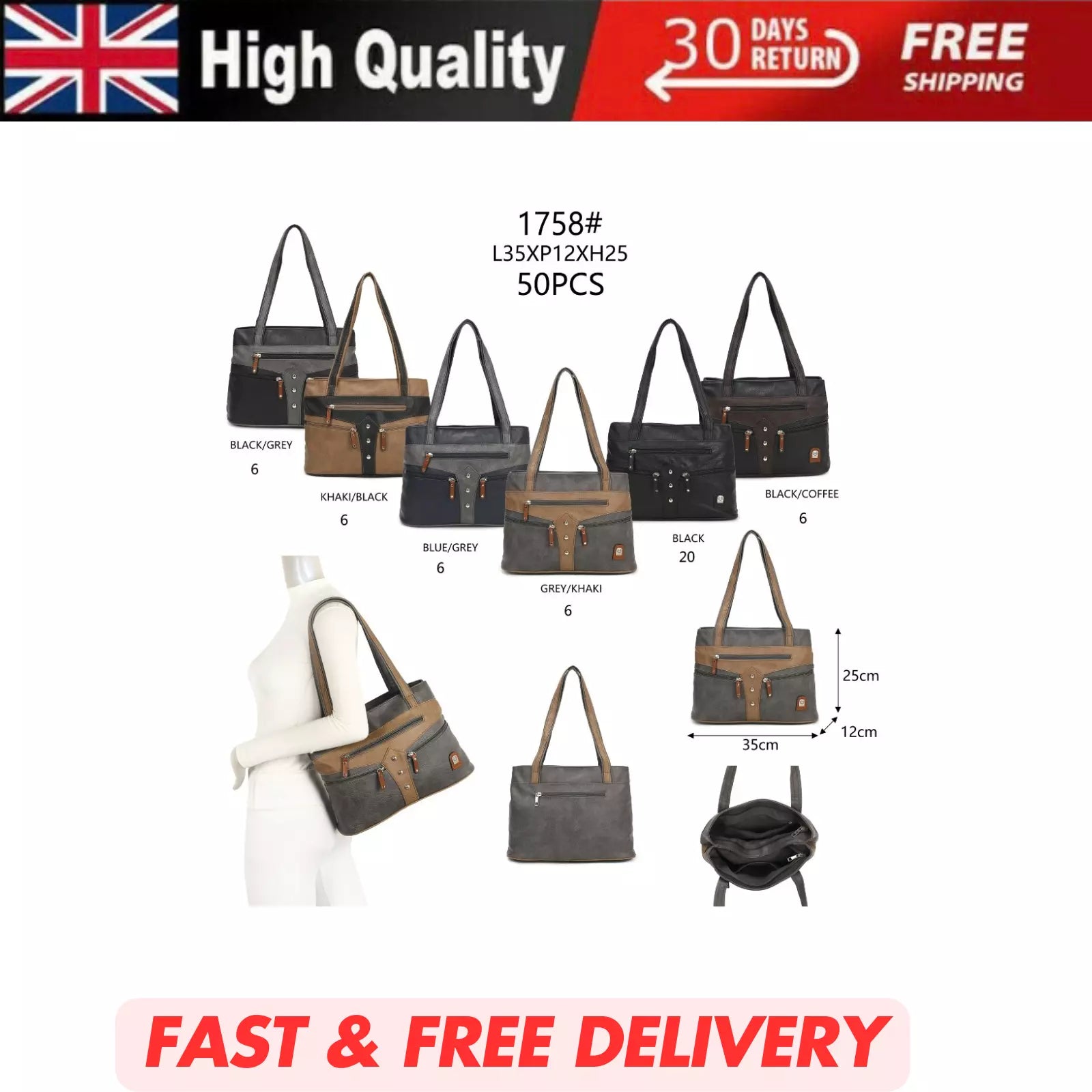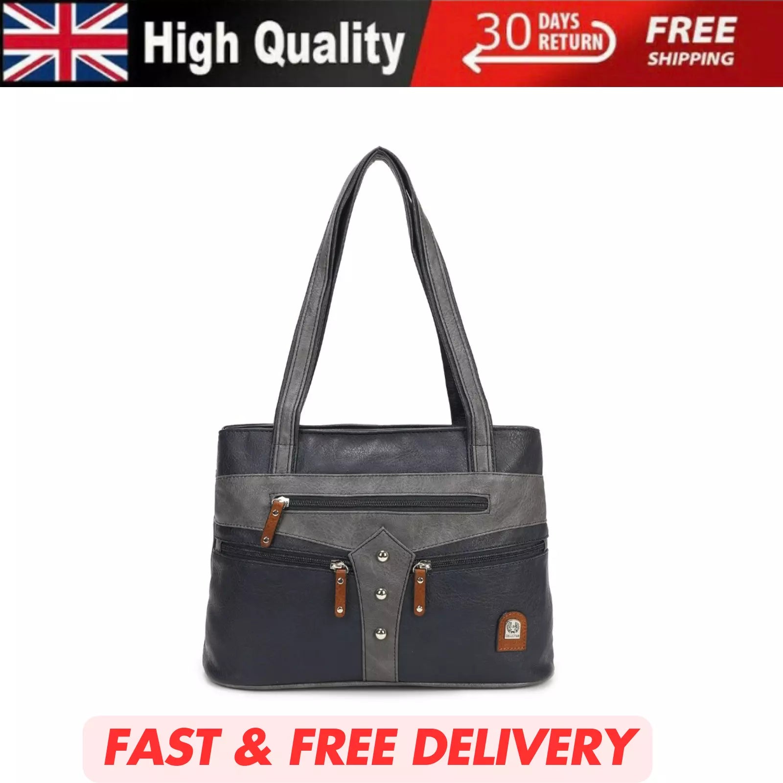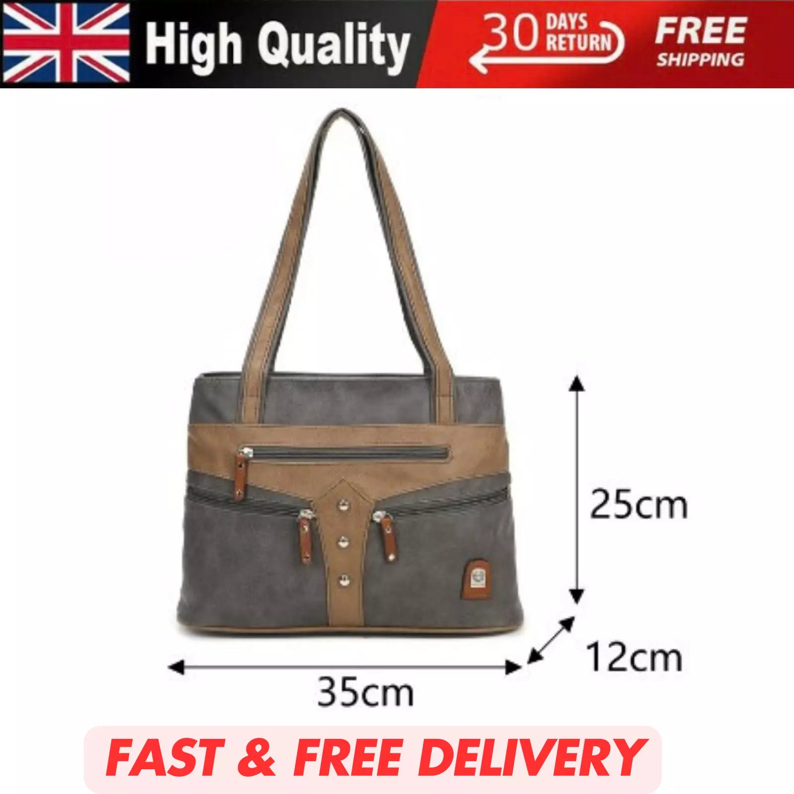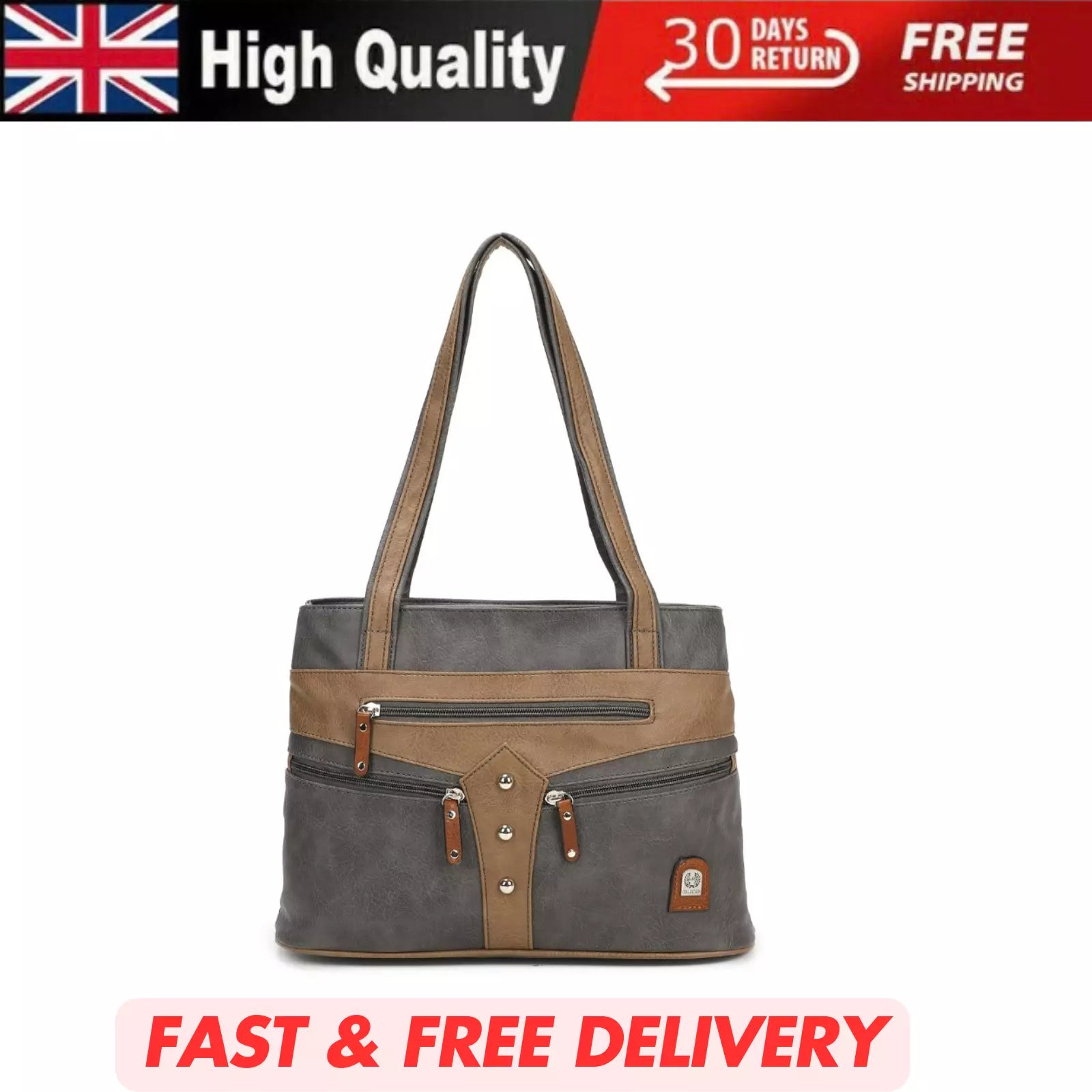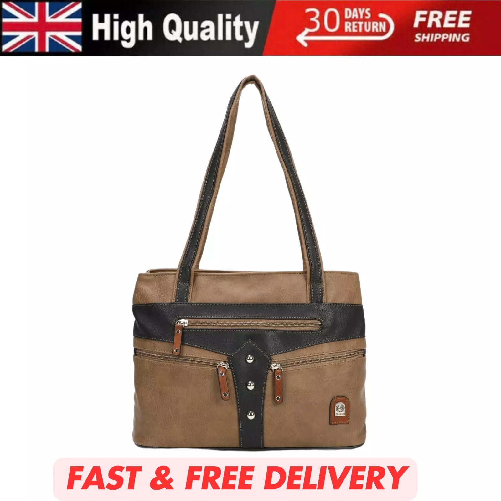 WOMEN'S VEGAN SOFT LEATHER CLASSIC HANDBAG SHOULDER BAG MULTIPOCKETS DURABLE UK STOCK